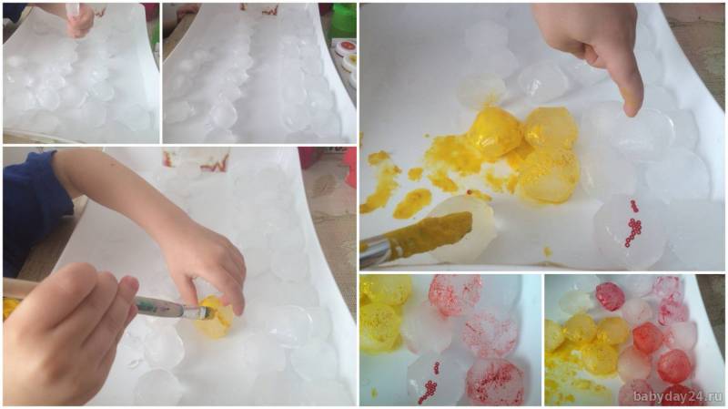 Итог игры: сын еще раз заинтересовался тем из чего сделан лед, какова причина вызывающая его таяние. Вопрос почему сходила краска сразу возник. Мы повторили понятие холод-тепло. Растопили льдинки, поняв при этом, что это была вода. Самое веселое было их катать о подносу, они же скользкие. Друг на друга было непросто иногда положить. Время мы провели с пользой и интересом! Игры со льдом очень занимательны и вызывает море почему! Это же восхитительно)