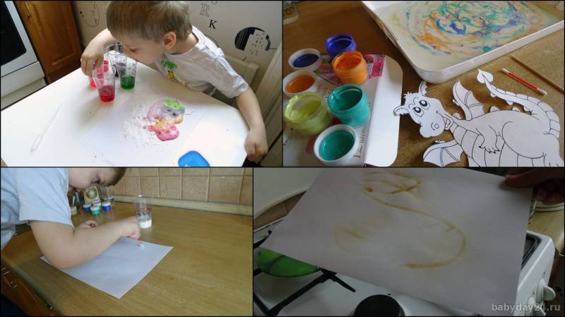 У нас сыном была цель нарисовать дракона с замком, но делать это обычным способом не особо хотелось. Тем более была поставлена задача - рисуем с помощью науки (химия, физика).